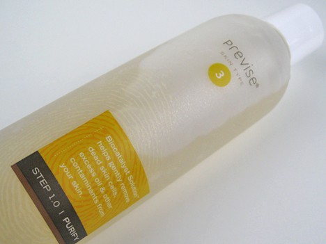 After doing my homework on Previse, I pulled back my hair, and began the testing. Being a packaging nut, I was immediately impressed with the simple yet chic bottles. The first step, the Purify Biocatalyst Solution Cleanser ($34) comes in a simple, shampoo looking bottle and has a lovely smell of peppermint. It foamed up nicely, and the minty smell was refreshing. It left my skin smooth and refreshed.
