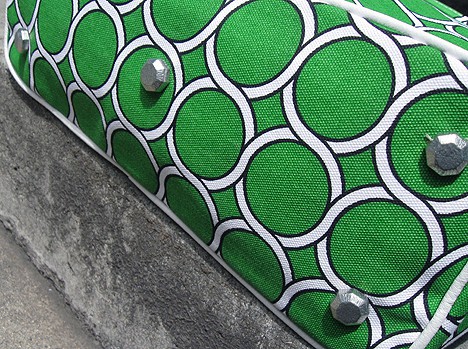 This bag looks great, out of my price range but awesome none the less. I like the bold pattern and the metal studs on the bottom.
