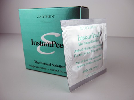 Well, after a thorough wht review period, I can tell you there is no suffering with this peel ladies! The Instant Peel by Earthen is truly different. Using natural fruit enzymes to slough off the dead skin (and reveal the new skin that’s been hiding beneath), it is free of detergents and colorants, hypoallergenic and oil free (which I always look for, as an acne prone gal).