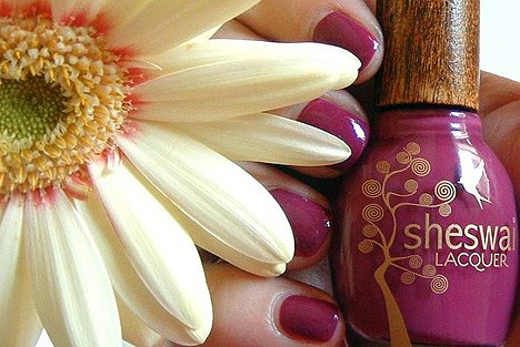 So it makes complete sense that someone with this experience, background, and eye for nail color would want to create her own line of lacquers. And my, what lovely lacquers they are! For Sheswai’s introductory collection, Ms. Leavitt “got back to basics” and created 7 colors to “suit any location…or dress.” There are sheers, brights and darks in this collection and the shade I received for review, Totally ($16) is a sophisticated fuchsia crème. In my opinion, it is a rich, deep combination of wine, plum, berry and purple. It’s a stunner.