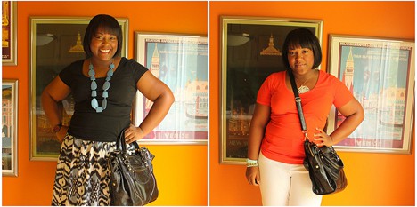 Super cute bag and outfits @dwj1 – I especially love the work outfit. Growing up I always heard not to mix black and blue so (except for blue jeans and a black tee) I usually do not mix them. Love the blue necklace against the black shirt and bag! And the Emily Satchel get big points in my book for have the attachable cross strap – it takes the bag from work only to weekend staple as well.