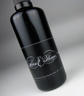 I had a hands on look at the Skin & Bones Organic Oil and it is truly a beaut of a bottle. Dark, simple, hefty – and would not look at of place on any high end shelf.