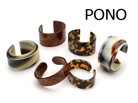 Back in my teenage years when diamonds weren’t even an option, my accessories were pretty much limited to finds from my mom’s old jewelry box (stashed with great Bakelite, Lucite and resins from the ‘50’s and ‘60’s). Mom’s jewelry box was great, but today PONO offers grown-up accessorizing options inspired by the vintage design I love. Classic elements, nature and a very modern concern for the environment are also part of PONO’s inspiration, all of which are achieved through the use of Italian resins, shells and natural woods and horn.