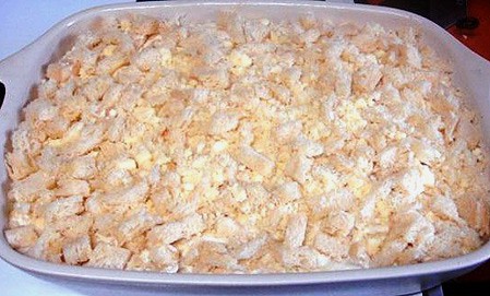 1. Jeez. My mouth is watering at the possibilites, yet I could never make this. A stick of butter, six and a half cups of cheese and six slices of white bread! If I could make myself take but one bite… Maybe I could reduce the recipe size to just a couple of small souffle cups? I’m about to look away…