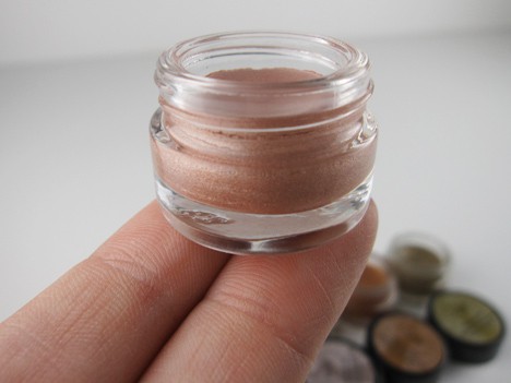 I received Slate, which is a beautiful bronze taupe colored cream shadow. This shadow was creamy; it glided easily and smoothly over my lids. I must say, Slate looked rather silky, ooh-la-la.