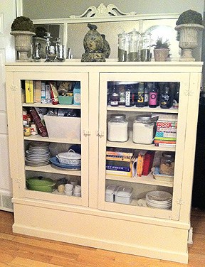Yes, it means having to keep the inside somewhat neat, but I’ve found it still looks great even when everything isn’t perfectly arranged! This is a nice “lived in” snap of my pie cupboard pantry; the somewhat jumbled contents gives it a nice cozy feel (well, that’s what I tell myself!)