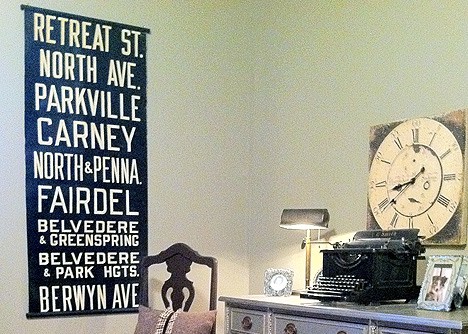 8. Buy vintage subway art to decorate the walls. I found these dark blue signs (above) at the “Country Living Fair” in Ohio last summer. They are actual subway canvas pieces from Baltimore subway stations in the 1920s! These aren’t always cheap, but I have seen screen printers on Etsy who can replicate these as paper prints.