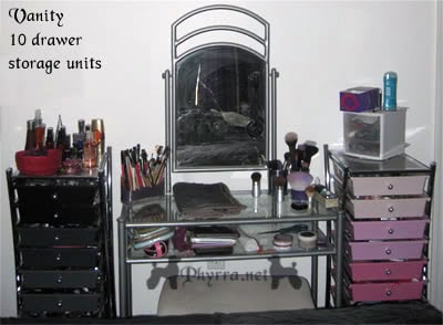 Phyrra, a lover of writing and gaming, standard poodles and sci-fi/horror/fantasy, is also a make up junkie. Over at her beauty site, she’s popular for her Face of the Day (FOTD) feature, and she’s got a stash of makeup that would make anyone envious. So how does she get it all into its right space? And keep it in place and accessible when she needs it?