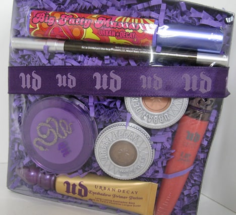 Hard Candy – If you’re searching for a fashion forward, yet affordable line with lots of color and cute packaging, you’ve got the answer in Urban Decay. This runway meets drugstore makeup line has donated a boxful of high style products including the Glamazon Glow Set, Fox in a Box Blush, Blush Crush Baked Blush in Pin-up, So Baked Bronzer in Heat wave, two Kal-eye-descope Baked Eyeshadows, Sheer Envy Primer, Lash Tinsel Glitter Mascara, Eye Def Glitter Eyeshadow, Ginormous Lash Mascara, Lash Call Mascara, Walk the Line Liquid Eyeliner, Stay in Line Eyeliner, Stroke of Gorgeous Eyeliner, Glossaholic Lip Gloss, Plexi Gloss Lip Shine, Plumping Serum Lip Gloss, Mouthing Off Sheer Lip Shine and the Tinted Lip Balm in Fishnet. Whew. Hard Candy products total $111.