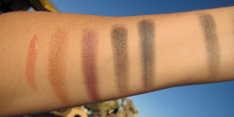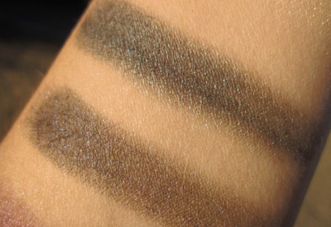 I’ve heard murmurs of people being unhappy with the quality of the 2010 holiday sets. Specific to these sets, that the eye shadows are not very pigmented. I definitely wish the matte shades applied darker. As you can see in the photo above, the 2 matte shades on the right don’t have as much oomph as the 4 shimmers on the left (yep, there’s a matte nude in between those 2 dark shades!) But I was able to build them, a good primer helped and the consistency is quite nice.