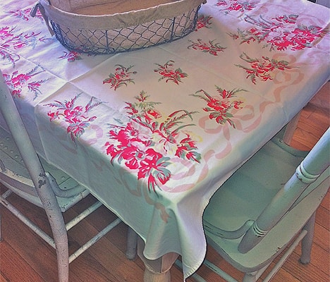 While I adore most any type of linen, my particular obsession lies with vintage tablecloths. Cloths made in the 40’s and 50’s had so many different patterns and colors, it’s hard not to fall in love with their charm. You just can’t find anything like them these days.