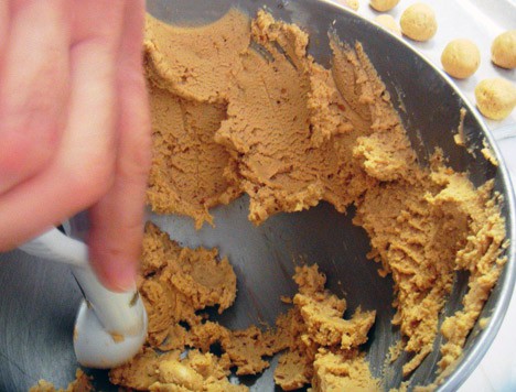 3. Use a melon ball scoop or large spoon for scooping (you want about two teaspoons of mixture), than mold the mixture into a ball.