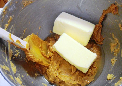 2. Place the butter, peanut butter, confectioners’ sugar and vanilla extract in mixing bowl. Using a heavy duty mixer, mix the ingredients until smooth.