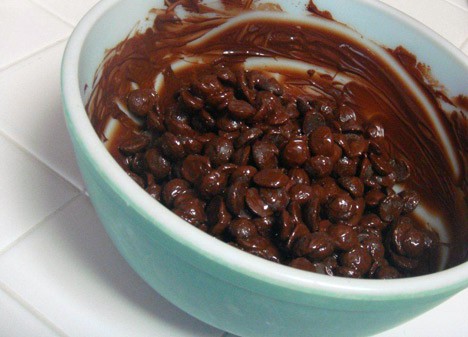 5. Meanwhile, melt the chocolate chips with paraffin wax (optional) in a large microwave safe bowl and microwave on high in 30 second intervals.